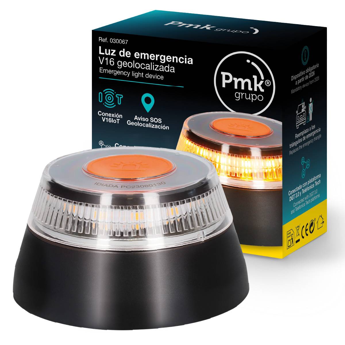 Luz de emergencia V16 geolocalizada certificada por la DGT IDIADA PC23080130 Modelo V16IoT / Ref: 030067